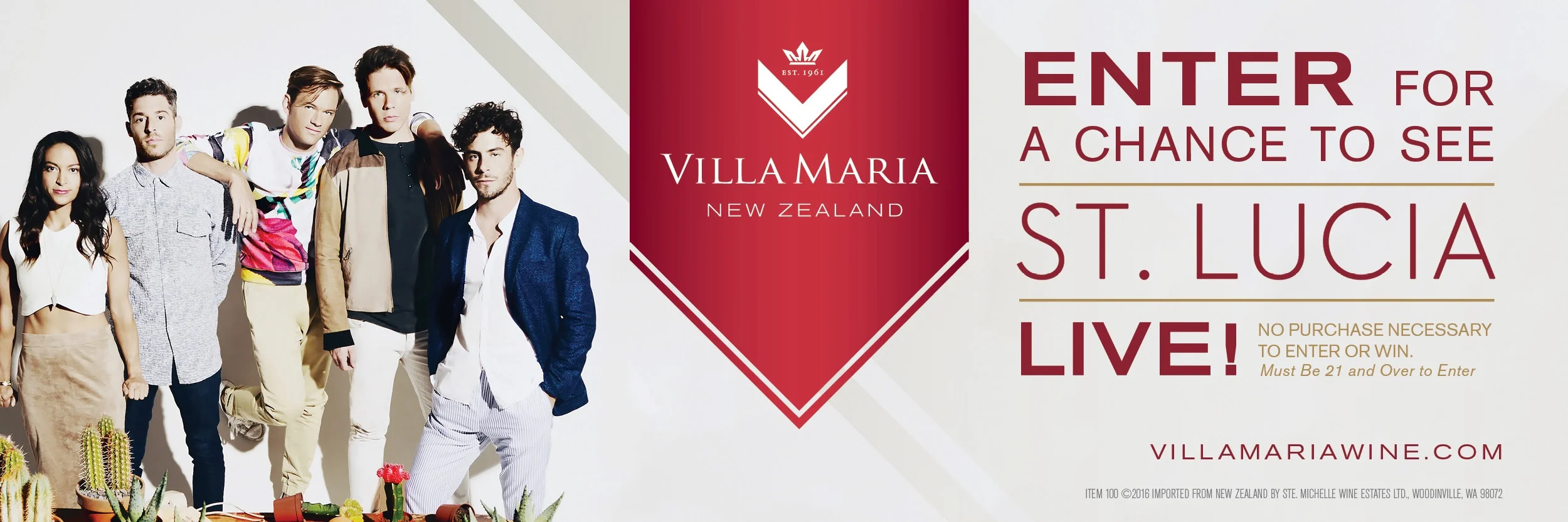 We're teaming up with our friends at Villa Maria Wine for our upcoming tour! Visit our contest page (HERE) for a chance to win a trip to California to see St. Lucia live and have dinner (and amazing wine!) with the band before the show.